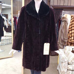 LIKE NEW Burgundy Mink Fur Sections 36" Coat with Sheared Beaver Fur Collar