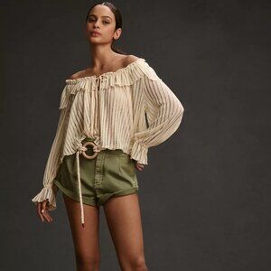 LIKE NEW By Anthropologie Long-Sleeve Sheer Striped Crop Blouse | XS | EUC