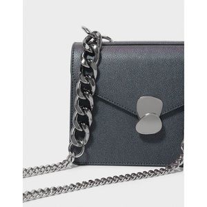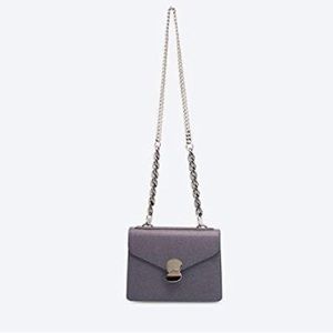 LIKE NEW CHARLES & KEITH Peacock Front Flap Bag Purple Metallic Silver Chain