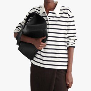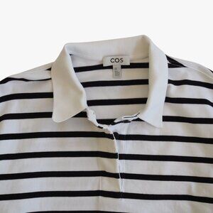 (LIKE NEW) COS | 100% COTTON RELAXED POLO WHITE BLACK STRIPE LONG-SLEEVE SHIRT