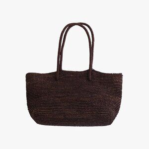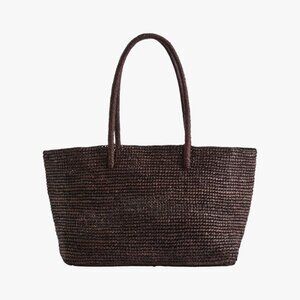 (LIKE NEW) COS | RAFFIA STRAW LEATHER HAND-WOVEN DARK BROWN TOTE SHOULDER BAG