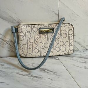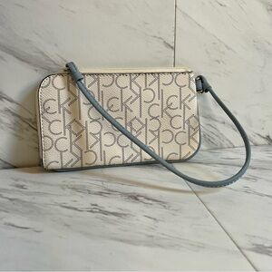 LIKE NEW Calvin Klein Monogram Logo Blue Wristlet Wallet