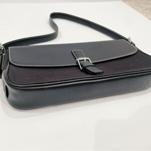LIKE NEW Coach Hamptons black leather & fabric shoulder bag handbag 7784 Y2K 90s