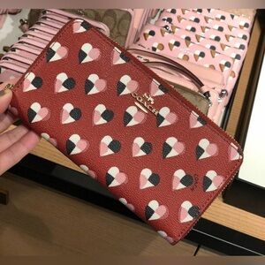 Heart, checker , zipper Wallet , Designer , Womens , cute , unique , rare , LIKE NEW! , fun , feminine , credit cards , Coach , limited edition , Purses , Red , Pink , Black , heart Valentineās Day Designer , preppy , Large , spacious , checkered , geometric , summer , party , clutch Purses