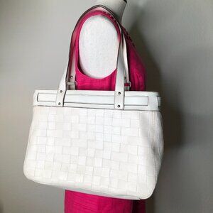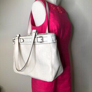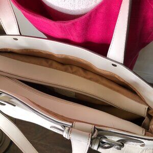This is a like new, soft white/ cream colored ladies "Crazy Horse" satchel/ purse/ handbag/ shoulder bag by Liz Claiborne! It looks like it has never been used and is in excellent condition!