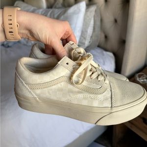 LIKE NEW Cream Checkered Old Skool Platform Vans size 7