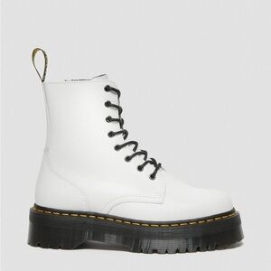 Stand tall. The Jadon boot takes over 6 decades of Dr. Martens DNA and transforms it into a unique, head-turning platform silhouette. Crafted from Polished Smooth leather, you can scuff or polish it however you choose. Our distinctive grooving pattern and yellow welt stitching mark the sole, and the top of the boot is tagged with a black and yellow heel loop. Fitted with a convenient inside zip — for attitude on the move in every outfit.