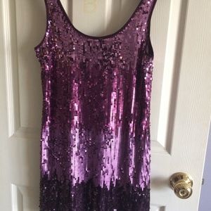 This little beauty was worn one time for a baton competition. That's right, she's versatile! You can wear her out or as a costume. She a mini in purple, and oh so cute. Full gorgeous sequins all around!