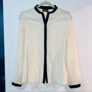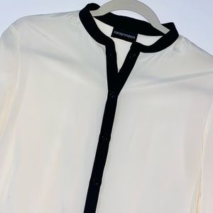 LIKE NEW! Emporio Armani Silk White and Black Blouse long sleeve Button Up Shirt