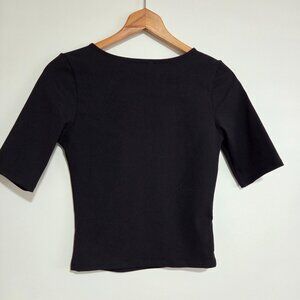 LIKE NEW FREE PEOPLE SWEETHEART NECK HALF SLEEVES BLACK TOP SIZE SMALL