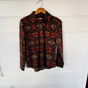 This like-new, never worn Legend top features the earth-toned Western Range Shadow pattern, designed by Douglas Goodfeather - it's a limited-edition version of Faherty's bestselling all-season fave, and it's PERFECT for autumn.