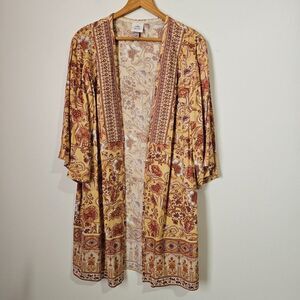 LIKE NEW KNOX ROSE BOHO FLORAL OPEN LONG KIMONO TOP SIZE XS/SMALL