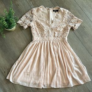 LIKE NEW LULUS ANGEL IN DISGUISE LACE SKATER DRESS IN BLUSH PINK WEDDING GUEST M