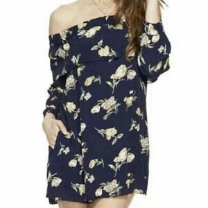 FLYNN SKYE | Louie Mini Dress Deep Blue Blooms Women Size XS Off Shoulder Tunic