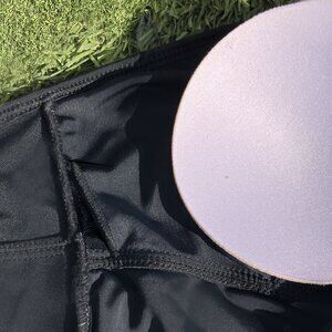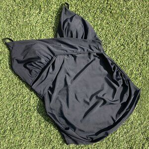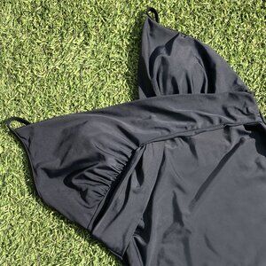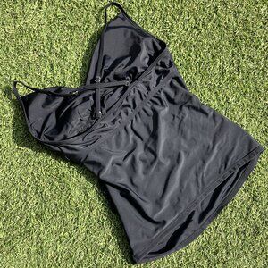 LIKE NEW! Maternity swimsuit "tankini" top. Crisscross chest with removable pads provides comfort and support. Stretchy fabric, with ruching at the sides allow for expanding baby belly.
