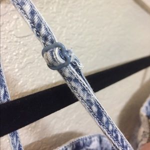 LIKE NEW!!! Cute peplum Denim & Lace top with front zipper and adjustable straps. :)