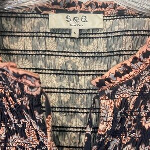 LIKE NEW Sea New York Puff Sleeve Floral Print Maxi Dress in navy blue and peach