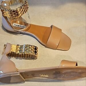 LIKE NEW! TED & MUFFY DUO BOOTS Patent Leather Gold Ankle Strap Flat Sandals 41.
