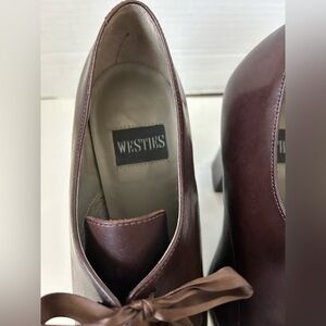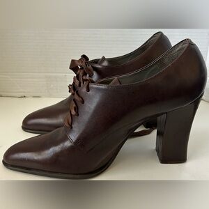 LIKE NEW VINTAGE OXFORD STYLE LACE UP WESTIES Sz. 10. RICH BROWN, RIBBON LACES. SEE PHOTOS. SHOES ARE IN LIKE NEW CONDITION.