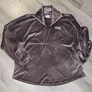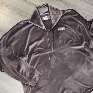LIKE NEW VS PINK Varsity Dk Gray Velour Cowlneck Pullover