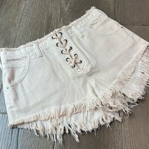 LIKE NEW! We the Free by Free People ivory denim lace up shorts size 30