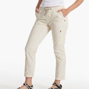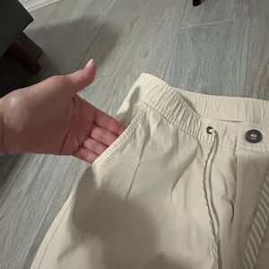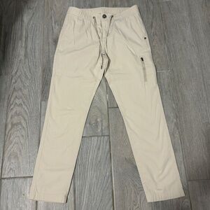 LIKE NEW - ONLY WORN FEW TIMES IN EXCELLENT CONDITION!! Women's Vuori, light tan Ripstop pants. Great light tan color for all seasons. Side zipper pocket and front pockets. Elastic, button and tie waist. Super flattering on - can be cuffed or worn without. Removed long Vuori tag for comfort. SIZE - SMALL