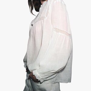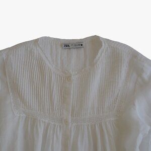 (LIKE NEW!!!) ZARA | 100% RAMIE "ROMANTIC SHIRT" BOHO BLOUSE NATURAL FABRIC
