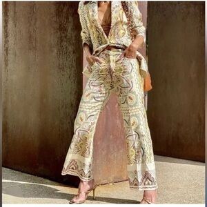 LIKE NEW ZARA PAISLEY PRINTED LINEN COTTON BLEND BLAZER (S) & MATCHING PANTS (M)