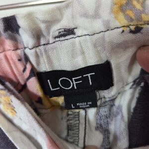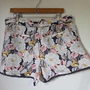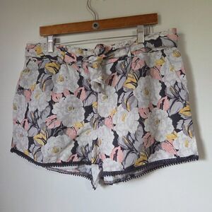 LIKE NEW LOFT FLORAL BELTED LINEN BLEND SHORTS SIZE LARGE WOMENS