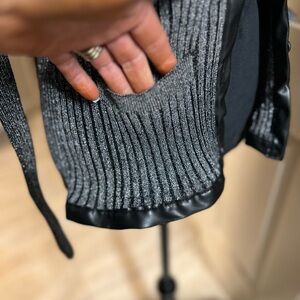 🔥🖤🖤YAL NEW YORK BLACK & SILVER BEAUTIFUL BUTTON UP SWEATER WITH FAUX LEATHER TRIM. THIS SWEATER IS IN PRISTINE CONDITION. 🖤🖤🖤🔥