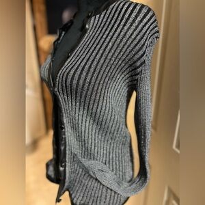 🖤🖤LIKE NEW-YAL NEW YORK BLACK & SILVER BUTTON UP SWEATER SZ L🖤🖤