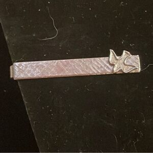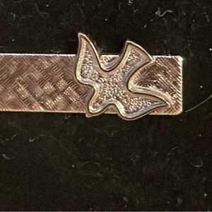 LIKE NEW silver tone diamond etched rectangular tie bar/tie clip w/3D dove