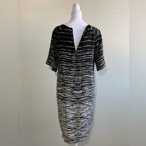 VINCE Black and Cream 100% Silk Shift Pockets Dress, midi length