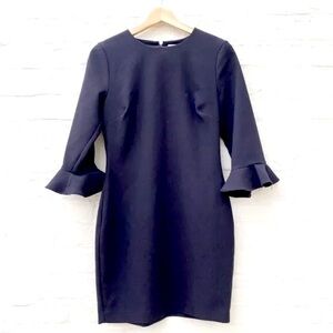 LIKELY bedford dress in favorite stretch with 3/4 sleeves with ruffle hem and bodycon fit