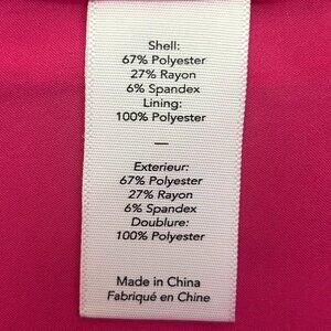 • Material: 67% Polyester / 27% Rayon / 6% Spandex; Lining: 100% Polyester