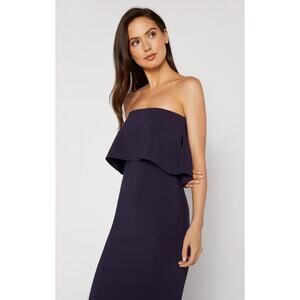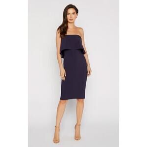 LIKELY Driggs Strapless Bodycon Dress Knee Length Drape Overlay Navy Women's 10.