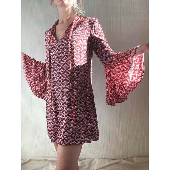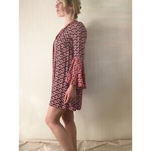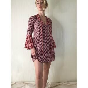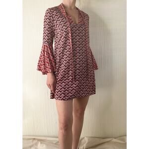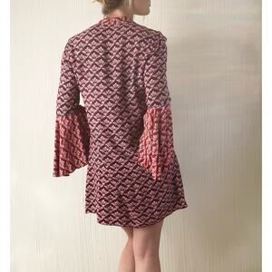 LIKELY Groovy Maroon Print Bell Sleeve Mini Dress US 2
