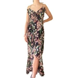 LIKELY Maxi Wrap Dress 4 Black Tulip Floral Fairycore Feminine