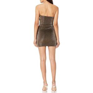 Likely 'Mini Ali Dress' designed in a glimmering, metallic-gold stretch fabric.