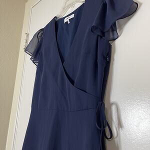 LIKELY Navy blue wrap chiffon vneck ruffle hem flutter dress size US 4