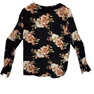 LIKELY Revovle Sophia Floral Mimi Top in Black Multi Surplice neckline Size XS
