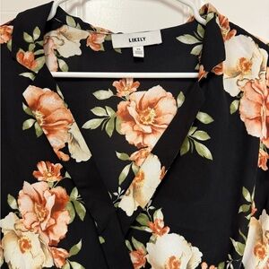 LIKELY Revolve Sophia Floral Mimi Top in Black Multi Surplice neckline Size XS