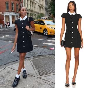 A best selling style and influencer and it-girl favorite! Sold out in this size on Revolve. Crafted of tweed, LIKELY's cap-sleeve Riello minidress features a contrast, layered point collar and playful fringe trim.