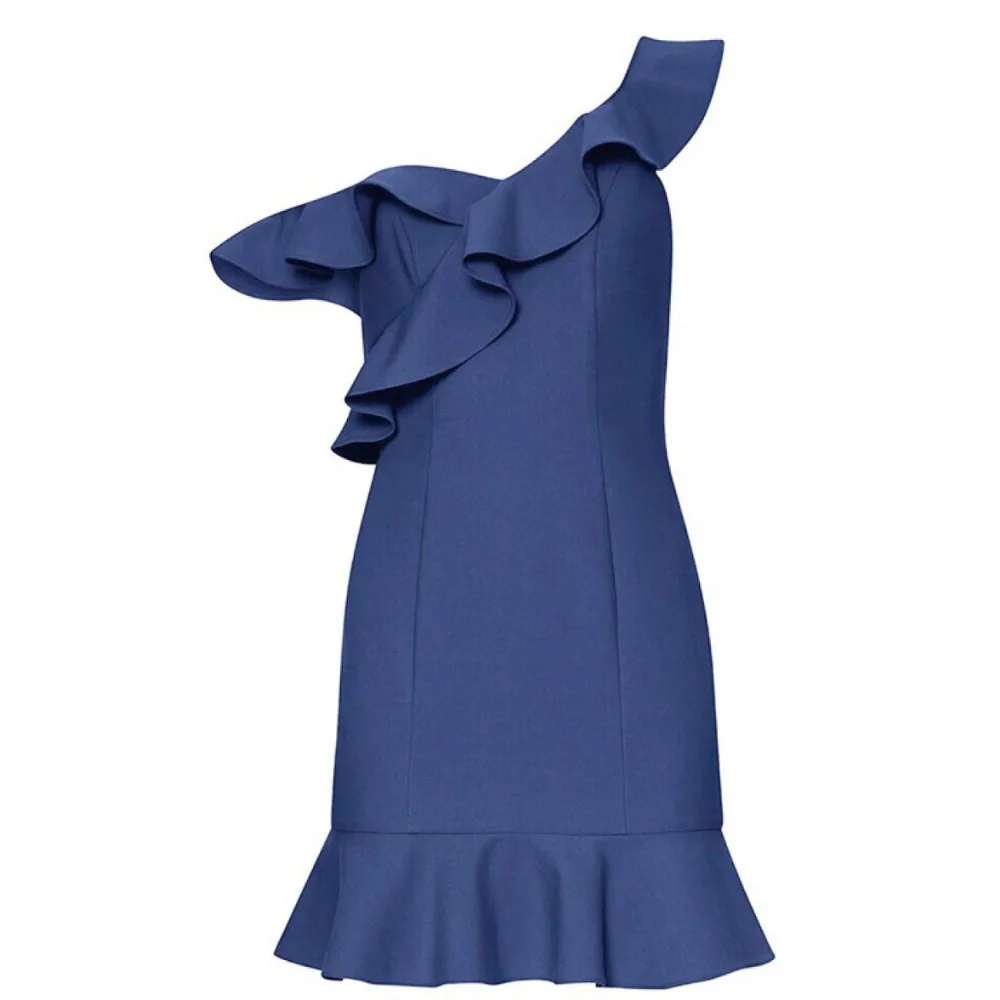 *Mini dress with asymmetrical straps and ruffled details.