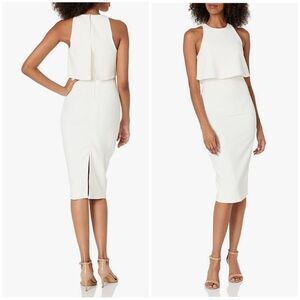 LIKELY Shayna Dress Womens Sz Medium Ivory Ruffle Bodice Overlay Cocktail