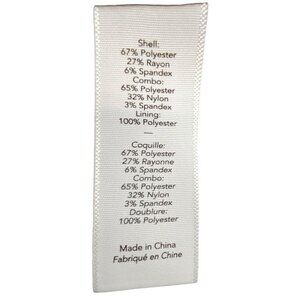 Fabric: 67% polyethylene, 27% rayon, 6% elastane