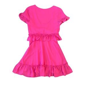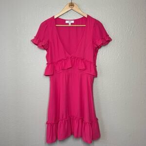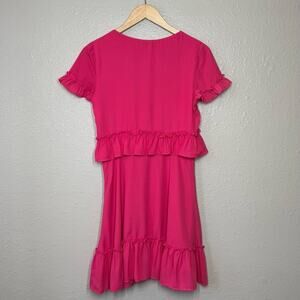 LIKELY Women’s Brason Ruffle Trim Flowy V Neck Cap Sleeve Party Dress Pink Sz 6