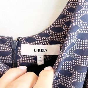 LIKELY printed fit and flare mini dress. Pleated Skirt, navy blue color. Excellent condition.