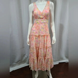 LIKELY Womens Size 0 Rachel Floral V-Neck Tiered Ruffle Maxi Dress $278 Peach