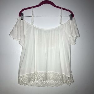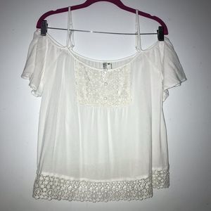 White ANDREE BY UNIT Short Sleeve Cold Shoulder Crochet Blouse Medium M // LIKE NEW